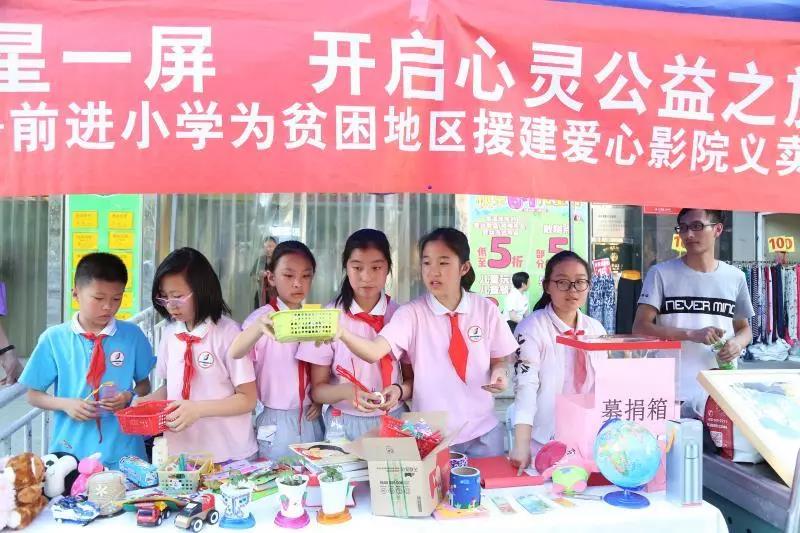 王校长介绍,前进小学在校内及辖区内开展的义卖活动,把有限的课堂成果转化为无限的社会价值,有效促进了学生品德、社会认知、沟通协作、创造力的发展,得到了家长们的大力支持。通过持续开展“爱心100”、“益星一屏 开启心灵公益之旅”同心影院义卖等实践活动,爱的种子、社会责任感等也撒播在孩子们的心中。截止目前,同心影院义卖活动已有万余人次参与。